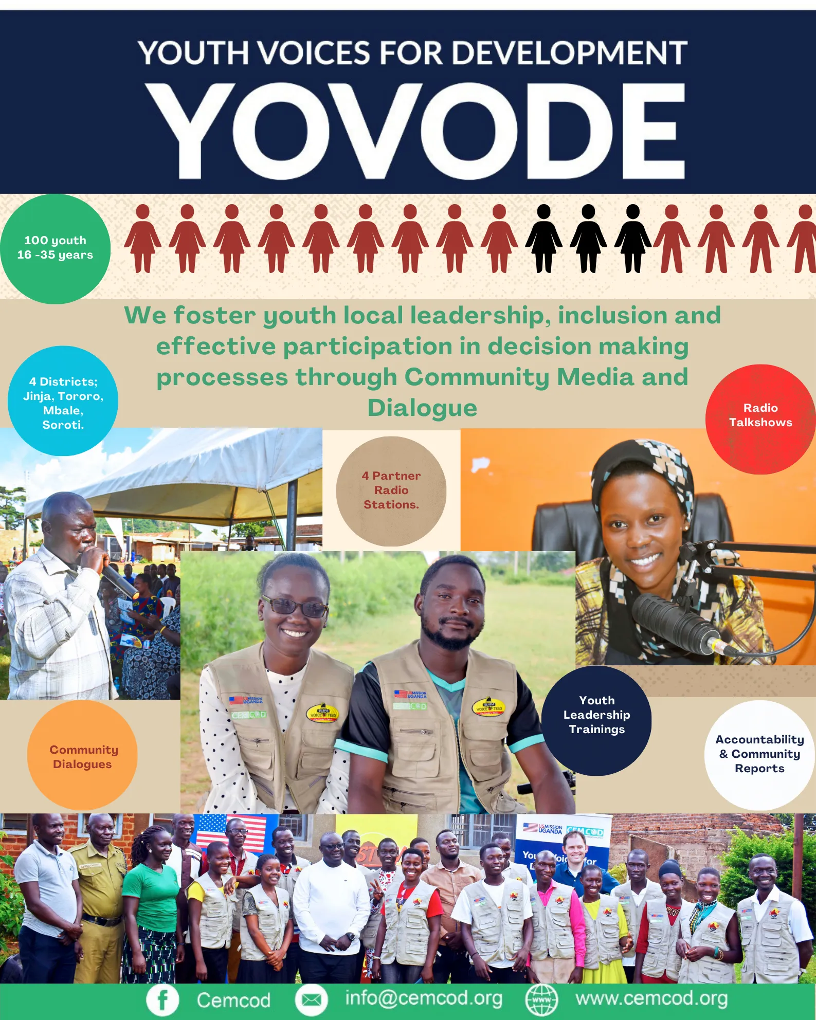 Youth Voices for Development – YOVODE is an emerging community leaders’ program specially designed for young people 19-24 years of age from across Uganda focused on youth development and civic engagement. The program fostered youth local leadership, inclusion and effective participation in decision making processes at local level. It instilled greater self-esteem and confidence for active participation of young people in their own development and that of their communities. Selected youth were engaged in a series of activities including: